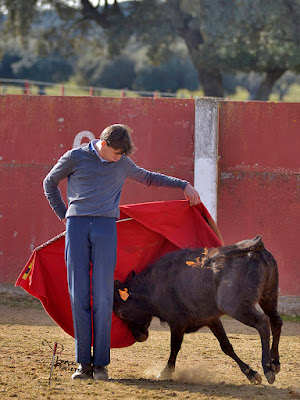 Me gusta mucho acompañar a La Escuela Taurina al campo, a la preparación de sus alumnos en tentaderos. Ves la evolución de algunos chicos, la novedad de otros, los miedos, las dudas, las reservas… y la ilusión de todos. Aprendes de los consejos, las puntualizaciones, las correcciones y las alabanzas del equipo docente, en este caso, la de su director D. José Ignacio Sánchez.